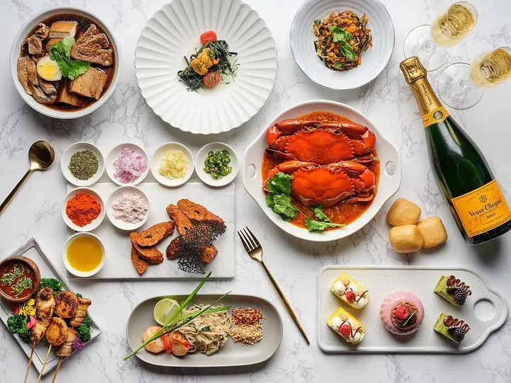 想和家中老人长辈一同共进早午餐,或许南洋传统风味是一个更加合适的选择。从早餐时段开始,最新推出的早餐菜式包括The Coconut Club的著名椰浆饭, 以及Springleaf Prata Place的印度煎饼,其他极具本地特色的早餐选项还包括咖椰土司与半生熟蛋、海南猪肉粥、干捞云吞面、炒萝卜糕等。六道招牌早餐可以单点,也可作为周末半自助餐的一部分。周末的自助餐台上也包括不少本地著名小吃美食,包括中峇鲁楗柏水粿、阿姨粿点、HarriAnns的芋头糕、Molly’s的印度蒸米粉等等,以及由酒店厨师们精心呈献的米暹、隆冬与咖喱菜、炒米粉、糯米饭、豆花等等。餐厅还全日供应七大招牌美食:肉脞面与鱼鳔汤、海南鸡饭、肉骨茶、虾面汤、加东叻沙、辣椒螃蟹与馒头、仁当牛肉,都是来自历史悠久的多年老字号。每个月的最后一个周末,邀请一位本地小贩在现点餐台上负责一道经典美食,届时你可以近距离观赏美食。