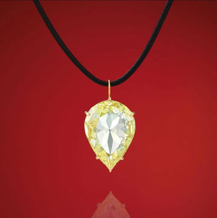1953年,玛丽莲梦露(Marilyn Monroe)在电影“Gentlemen Prefer Blondes”中演唱一首经典名曲“Diamonds are a Girl's Best Friend”时,颈上的链坠就是这颗Moon of Baroda钻石。这不是一颗普通的巨钻,而是有着悠久历史的旷世杰作。美国宝石学院(GIA)最近鉴定,这颗重24.04克拉的彩黄色钻石来自以开采美钻闻名的印度戈尔康达(Golconda)传奇矿场,年代可追溯到15至17世纪,可能是印度古代最富有的王室家族——巴罗达的盖克瓦德家族(Gaekwars of Baroda)——的无数珍藏之一。曾有美国报刊将Moon of Baroda形容为“钻石切割史上的臻美典范,色泽淡黄,纯净透彻,加上梨形切割,最适合镶嵌成印度贵族的头饰”。这颗钻石的估价为400万至600万港元。