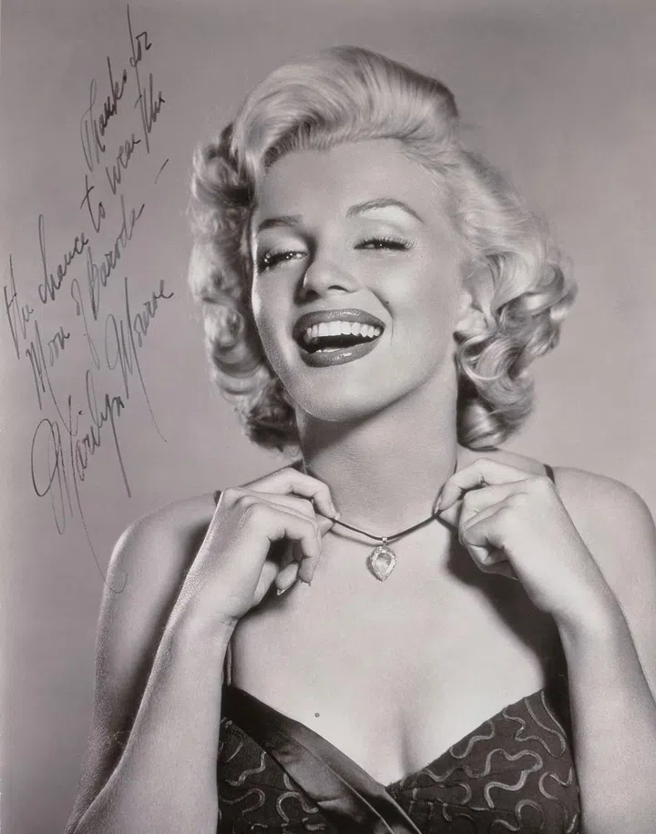 当年玛丽莲梦露佩戴Moon of Baroda钻石拍摄电影“Gentlemen Prefer Blondes”,面对这颗她戴过体积最大的钻石,性感女神不禁惊呼:“美丽至极!”这颗名钻先是在1944年由美国著名钻石切割公司总裁Samuel H. Deutsch购入,1953年卖给美国Meyer珠宝公司总裁Meyer Rosenbaum,也就是在那年借给电影公司让梦露戴着拍戏。梦露还戴着它拍照留念,并且在照片上留言及签名。如今,Moon of Baroda钻石被私人收藏家珍藏20年后再次被拍卖,佳士得香港也特别将这张照片带上拍卖场,让珠宝收藏家及影迷竞投。