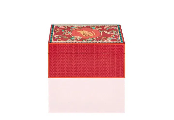 当代中国风品牌上海滩(Shanghai Tang)为迎接鼠年,推出了一系列鼠年主题家饰品,这款可用来存放首饰的红色漆木盒子,盖子表面绘有精致的老鼠图案,红彤彤,喜洋洋。