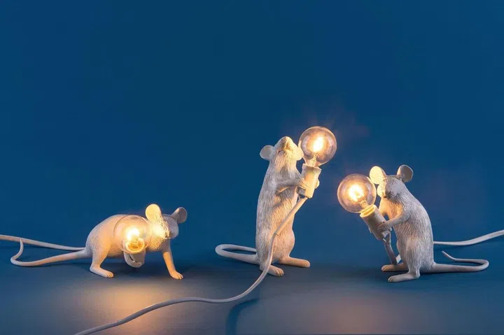 意大利品牌Selleti的作品素以玩味十足见称,这个由Marcantonio Raimondi Malerba设计的老鼠造型灯具系列,活灵活现,有白灰金三色,配合各种颜色的灯泡,让你点亮新的一年。
