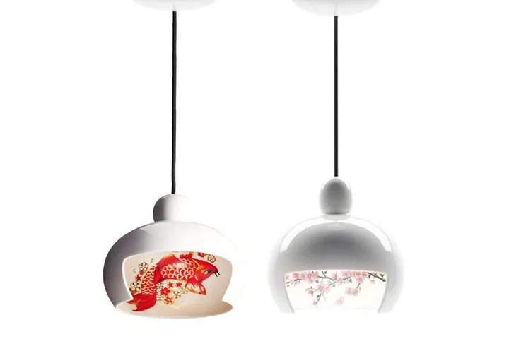 意大利设计师Lorenza Bozzoli创作的这款Juuyo内绘陶瓷吊灯,以日本艺伎发型为灵感,灯具内壁绘有鲤鱼或樱花图案,换个角度看,其实也洋溢着新年的喜气。