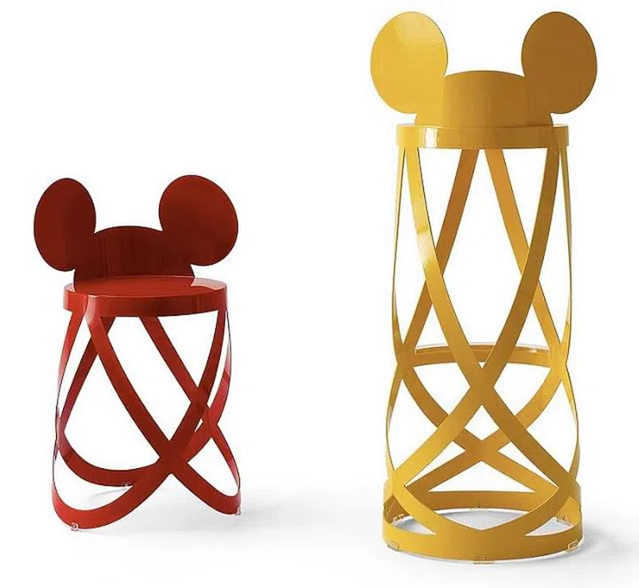 优质创意,历久弥新。这是日本Nendo工作室十年前的作品,当时意大利品牌Cappellini与Walt Disney为庆祝米奇老鼠诞生80周年而进行合作,Nendo掌舵人佐藤大(Oki Sato)遂将之前为品牌设计的丝带造型凳子“升级”,加上两个米奇老鼠的耳朵作为椅背,可爱而生动。