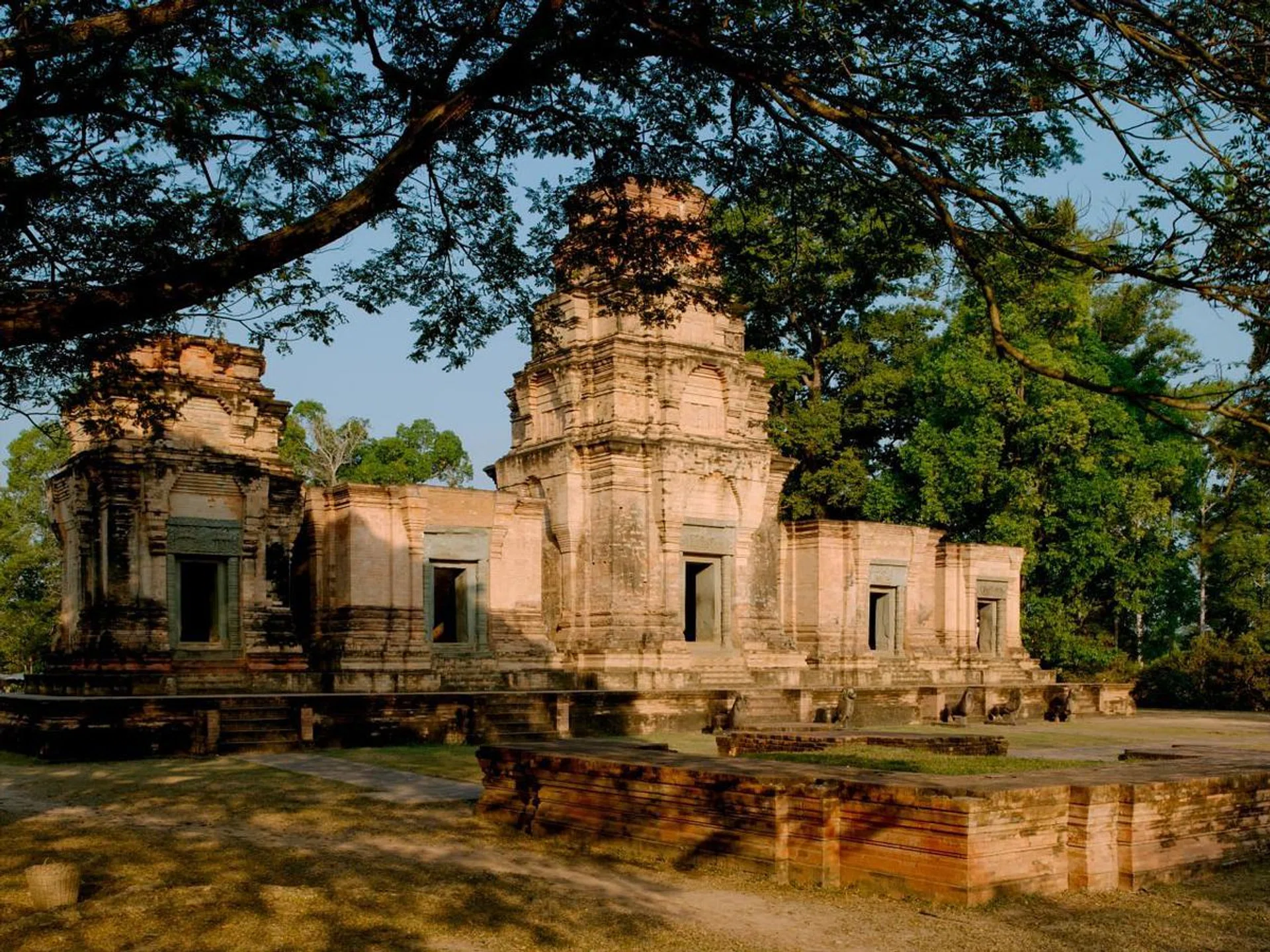 吴哥被称为丛林中的亚特兰蒂斯,面积非常广,除了主要的三大寺庙建筑群,其他如在公元967年建造的女王宫(Banteay Srei Temple)和宝剑寺(Preah Khan Temple)都值得一看,安缦萨拉安排的导游强力推荐,结果我们趁一个阴天的早上,在细雨中探访。位于吴哥窟外圈的女王宫又被称为是吴哥艺术宝石或女人的城堡,内部供奉婆罗门教三重世界的主宰,南部是主掌“毁灭”的湿婆,北部是主掌“维护”的毗瑟奴,整座塔庙均由硃砂色的砂岩建筑而成,是吴哥遗迹中细节保留得最好的寺庙,随处可见精致华美的浮雕。
