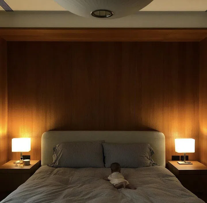 卧房的一大亮点,必然是瑞典床王Hästens出品的梦幻床具。标志性的蓝色格纹床垫,采用了顶级用料和百年传统工艺,提供让人宛如置身云端的睡眠体验,要价不菲,也反映出夫妻俩对生活品质细节的注重。