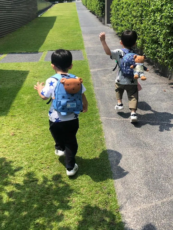 但对老公陪小孩,杨采妮心里还是有点担心。她偷偷去观察,发现老公、儿子们在玩角色扮演,邱韶智扮章鱼,儿子们很开心。