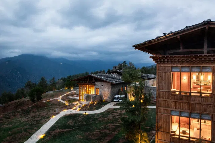 继安缦(Aman)入驻不丹之后,另一家世界顶级度假酒店集团六善(Six Senses)忠于自己的理念,亦来到这雷龙之国一举布下5家酒店。六善酒店的理念一直都是如何完美的融入当地的环境,尽可能的不去破坏原有的生态。五间精心设计的不丹六善小屋分别布局于廷布(Thimphu)、普那卡(Punakha)、岗提(Gangtey)、布姆唐Bumthang)和帕罗(Paro)。酒店以“卫星酒店”的形式,串联起游客在不丹的美妙旅程。位于不丹王国首都的廷布的六善酒店是五家六善酒店中规模最大的一间,从酒店可远眺迷人的廷布峡谷以及高52 米的大佛,户外设有下沉式表演台,被称为“天之宫廷”。客房线条简洁,木板间隔层次丰富,墙面是天然纯净的石头,阳台上采用落地玻璃作为护栏,房间的每一处都在彰显著六善的自然与纯粹。