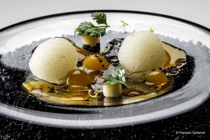 Disfrutar的品尝菜单不仅秉承了现代主义的烹饪原则,还突出了三位厨师的独特个性。前卫创新而充满戏剧性的菜肴刺激了客人们的感官,不断给以惊喜。招牌菜要包括鱼胶制作而成的通心粉、巴马臣奶酪配松露泡沫,还有“解构威士忌馅饼”,食客们必须在品尝前用威士忌洗手,再在吃馅饼的时候感受到威士忌的香气。