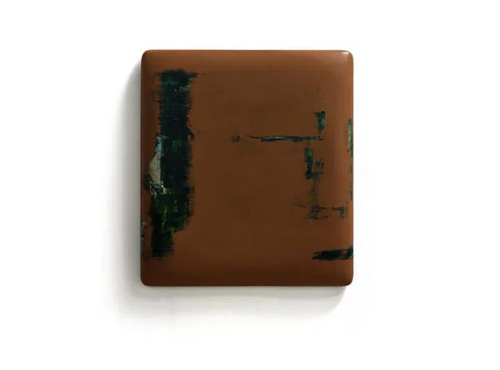 他习惯性的每天这样涂啊涂,最后画作呈现如同漆器和汝窑瓷器般的效果,让他意想不到,当中有很多的偶然,也渗杂了惊喜和懊恼。“我无法停止每天这样的工作,这对我来说并不复杂,就是不停的刷,所有的准备都已在那里,我只是去执行它。就像开车,路造好了,油打满了,我就只是规定自己把那几个小时的车程开完。”他说得云淡风轻,背后其实有着多年来累积对艺术的参透和历练。