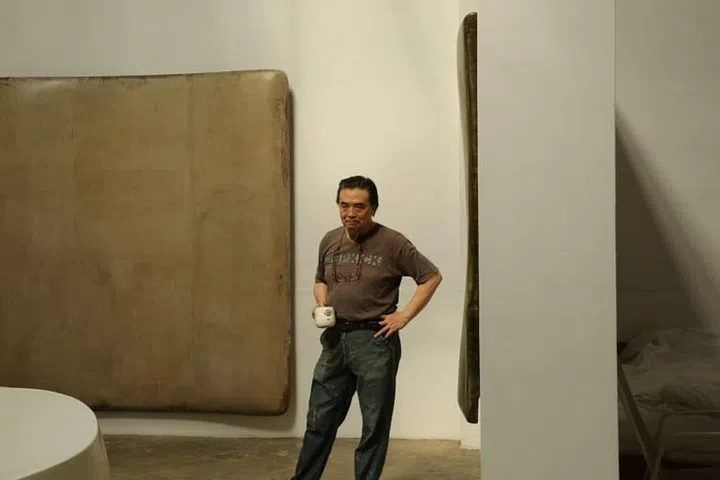 对他而言,以大漆作画是一种选择,关键在于如何别出心裁地使用漆料,才能创造出与民间工艺不一样的艺术效果和层次。此外,他以相对粗糙的麻布取代帆布作为载体,但不是将麻布绷紧在画架上,而是让麻布凹陷进去或鼓胀起来,而他也已习惯不用画架作画,而是把画布平放,然后涂上一层又一层的大漆,让画面有实体感和重量感。