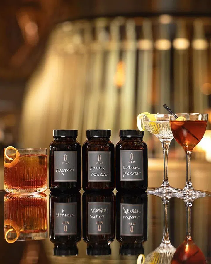 去年“世界50最佳酒吧”排名第八、“亚洲50最佳酒吧”第一位的Atlas酒吧推出网购服务Atlas Bar Shop,让顾客通过网络订购他们家的著名鸡尾酒如Altas Martini和Negroni等,以及各种精酿琴酒、烈酒和调酒配备。罐装鸡尾酒分100ml、250ml和500ml,消费满$100免费宅送。
