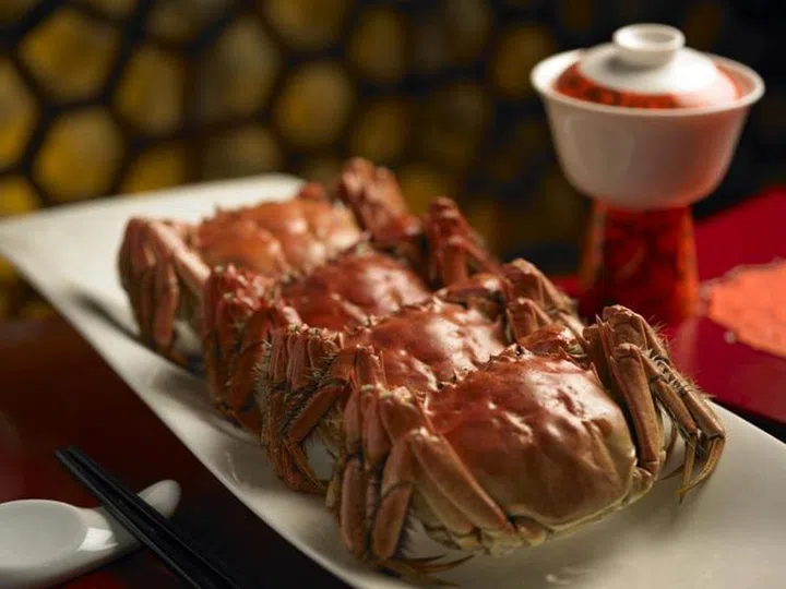 据报道,今年大闸蟹在中国销量需求增多,本地食客也有口福,一些餐馆推出精致大闸蟹菜肴。