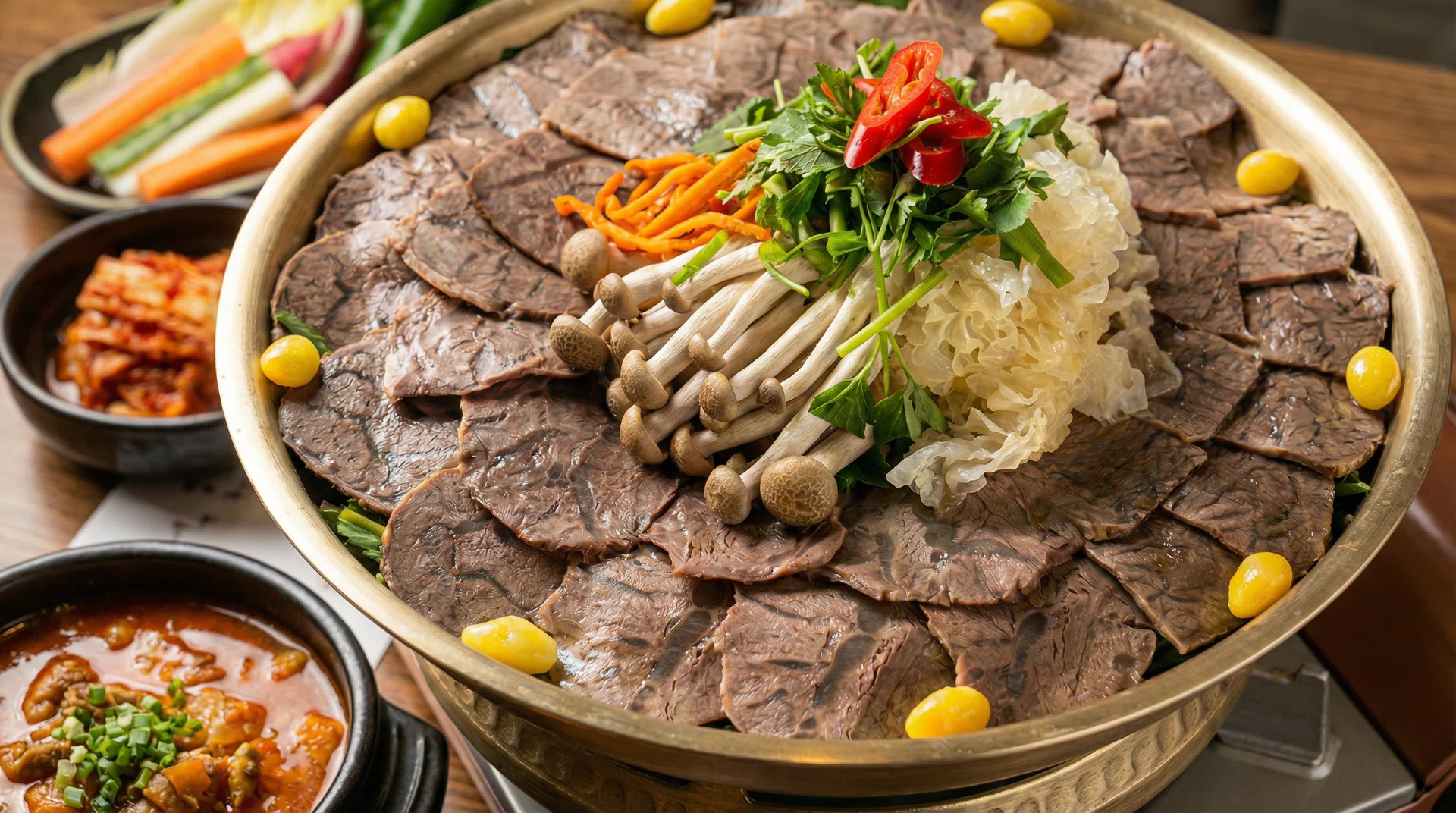除了延续Mandarin Gallery旗舰店Drim备受赞誉的韩式烧烤料理,DRIM Gold也通过更丰富多元的菜单进一步提升整体餐饮体验。作为新加坡少数供应珍贵韩牛(Hanwoo)以及济州黑猪肉(Jeju Black Pork)的餐馆之一,全新菜单汇集多种优质食材,并加入全新高端海鲜选择包括济州鲍鱼与韩国鳗鱼,以及招牌手工制作荞麦面等等。必吃亮点菜肴包括韩式牛肉蔬菜火锅,做法源自韩国平壤地区的宫廷料理,将韩牛牛腩与牛腱薄片整齐铺在大圆铜盘中,清澈牛骨高汤经过 24 小时慢火熬煮,味道鲜甜浓郁。汤可以无限添加,让你喝个过瘾。