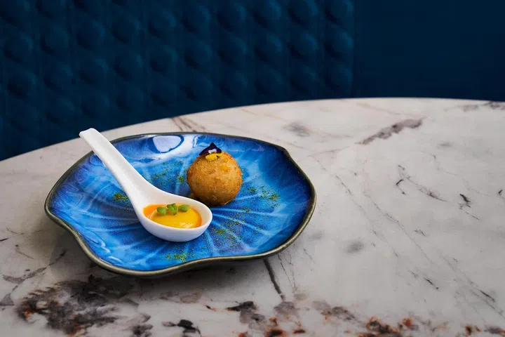位于莫罕默苏丹路(Mohamed Sultan Road)店屋的The Curry Club Signature,走的是现代小份量和分享式的精致印度料理路线,创办人Mr Raj是前新航空服人员,2004年转战餐饮业,售卖经典印度小菜与煎饼,渐渐在本地印族社群中打响名堂,疫情后开设The Curry Club Signature,与儿女共同经营这家餐馆。国际主厨Saumya Prakash拥有17年的国际化烹饪经验,擅长以现代手法呈献经典印度风味。在这里,所有马莎拉香料都是家传配方,摆盘与呈献风格却新颖。印度卷饼(Dosa)化身为锥筒,填满香料馅及有三种酱料。香料饭FGRO Biryani的以田鸡腿主角,搭配紫色的甜菜根印度优格,米饭蕴含苹果木烟熏香。这里也提供素食选项,其中包括主食Tofu Tikki Twist,也就是改良版的印度菠菜奶酪(palak paneer)。另外,餐馆也提供各式鸡尾酒。