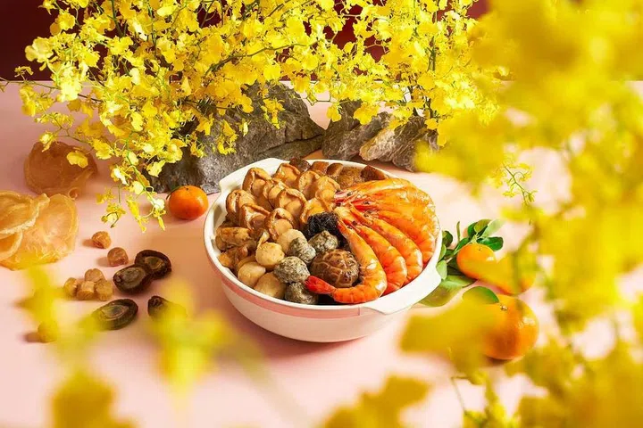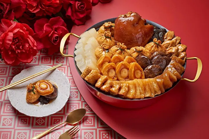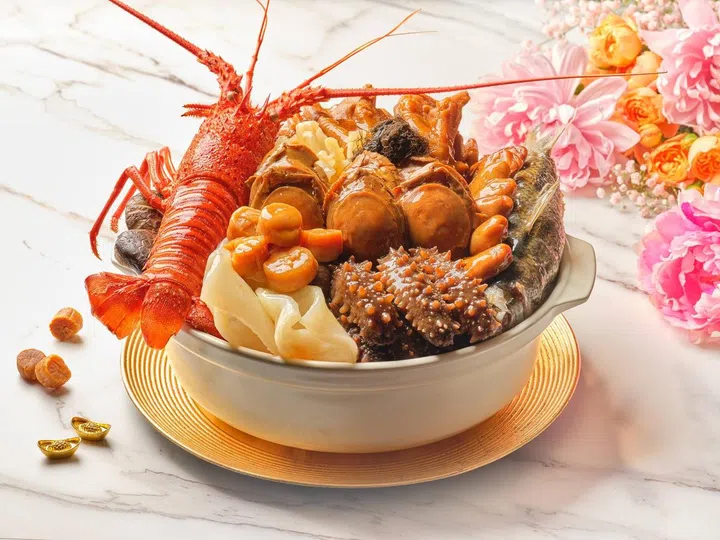 新加坡泛太平洋酒店(Pan Pacific Singapore)旗下中餐馆海天楼(Hai Tien Lo)今年推出两款盆菜,首先,“海天楼花开富贵凤吞燕煲”(Hai Tien Lo Classic Treasure Pot)的主要食材包括八头鲍魚、燕窝、樱花鸡仁、干贝、云吞、西兰花等。另一款“双龙赐福豪华聚宝盘”(Double Dragon Blessing Premium Treasure Pot)用料丰富,食材珍贵,里头融入龙虾、龙趸皇波水翅、八头鲍鱼、金蚝、海参、鱼鳔、干贝、烧鸭、自制鱼腐、豆筋、花菇、发菜、莲藕片和云南木耳共14种顶级食材。