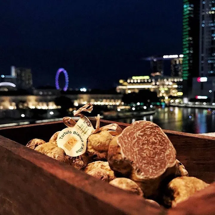 位于Ocean Financial Centre 43楼,放眼滨海湾一带无敌景致。国庆日推出四道式套餐,特备菜式有raw red prawns from ‘Mazara’、Carnaroli Acquerello risotto、quail ragout等等。