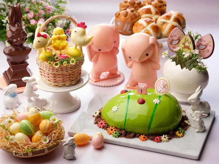 泛太平洋酒店在Pacific Marketplace准备了Egg-chanted Black Forest Entremet,复活蛋自然不能缺少,酒店还准备了Pink Rabbit Plush Chocolate, A Gentlemanly Bunny与Colomba di Pasqua模样可爱的甜品。而在复活节当日,Edge推出Easter Sunday Champagne Brunch,多种美食等着你。