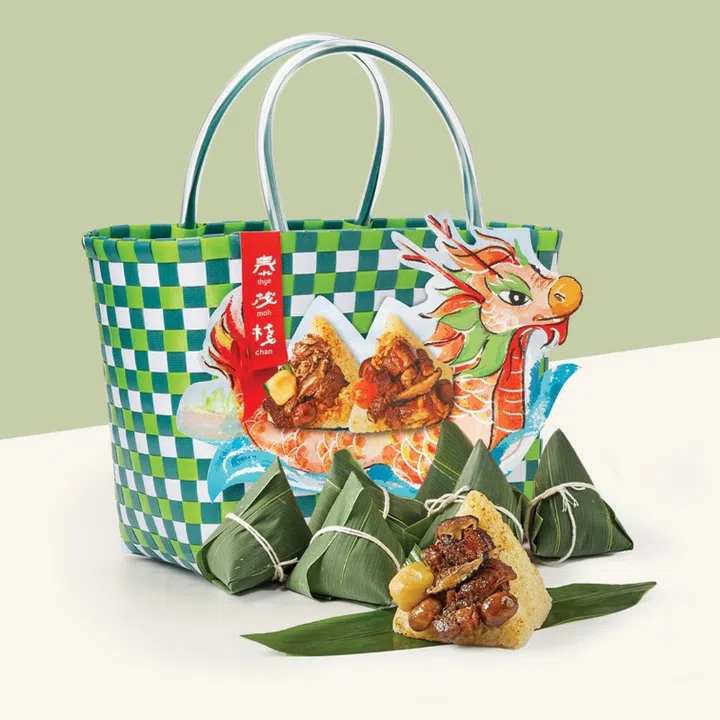 本地老字号饼家泰茂栈今年推出潮州双拼肉粽(Teochew Double Delight Bak Chang)、经典潮州咸蛋肉粽(Teochew Salted Egg Bak Chang)以及适合素食者享用的潮州香菇粽(Teochew Mushroom Chang)。作为系列中的畅销之选,潮州双拼肉粽完美融合甜与咸的双重滋味,香嫩五花肉、香菇与烤栗子的咸香口感,与以优质绿豆精制而成的自家制甜豆沙内馅相得益彰,包裹于上等糯米之中。此独特搭配在新加坡较为少见,既保留传统风味,又带来别具一格的味蕾体验。分别有两粒装、六粒装和十粒装供选择,六粒装和十粒装附送怀旧风限量版手提袋。