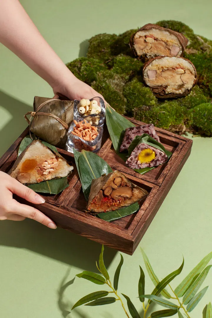圣淘沙名胜世界(Resorts World Sentosa)旗下粤菜餐馆风水廷(Feng Shui Inn)推出的粽子礼盒包含两款咸味粽与一款甜粽(每种口味各两颗),从咸香经典到甜蜜诱惑,绝对能满足不同人的需求。海味臻品粽(Dried Seafood Steam Dumplings)荟萃山珍海味,食材包括鲍鱼、干贝与黄金虾等上等海味,搭配五花肉、香菇与咸蛋黄。云南菌菇花胶粽(Yunnan Wild Mushroom & Fish Maw Dumpling)则融合云南珍稀牛肝菌、刺芹蘑等山野菌菇,配以花胶、鲍鱼和干贝,再以咸肉提味。三色枣香甜粽(Trio Date Sweet Dumpling)为甜品爱好者精心设计,甄选南枣、蜜枣及红枣,融合细滑红豆沙,外裹藜麦混合珍珠糯米,口感细腻,搭配清新香橘酱增添风味。粽子套组包含一瓶风水廷招牌XO酱,并以精美的保温袋呈献。
