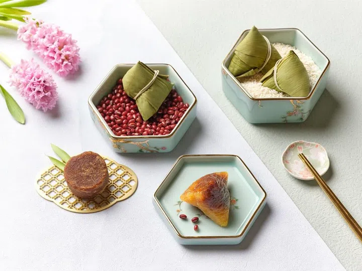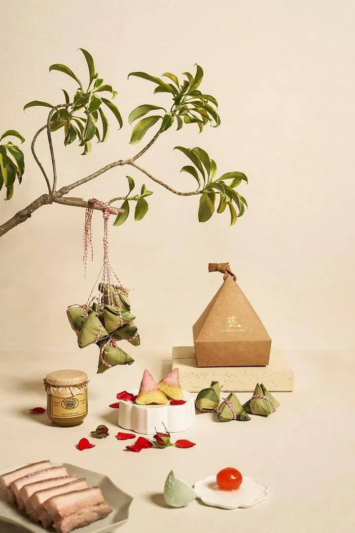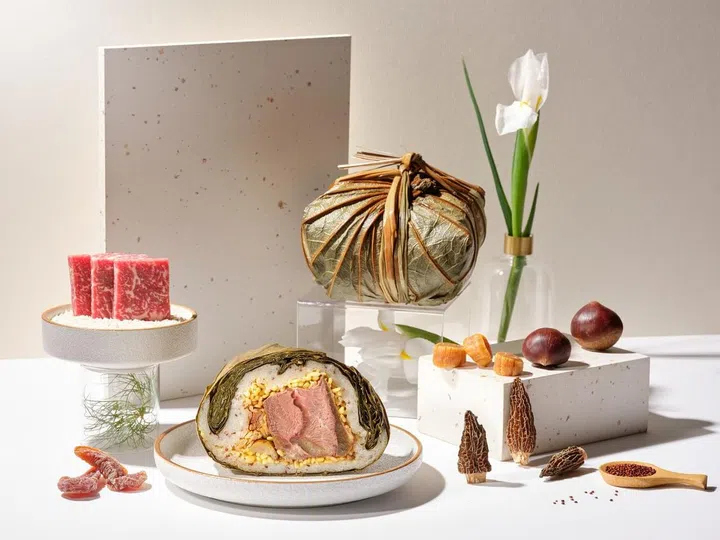 新加坡莱佛士酒店(Raffles Hotel Singapore)旗下中餐馆藝(Yì By Jereme Leung)今年的新款粽子“Bak Kut Teh & Salted Egg Yolk Rice Dumpling ”以肉骨茶为灵感,用料有浸泡在充满浓郁胡椒味的肉骨茶香料汤中的嫩滑的马来西亚风味猪肋排,搭配一颗咸蛋黄,适合口味偏重的食客们。另一款新口味是梁子庚版本的碱水粽(Yunnan Rose Petal Kee Chang with Raffles Signature Kaya Jam),糯米融入了云南玫瑰花瓣,使粽子呈现淡淡的粉红色调和花香。搭配莱佛士招牌咖椰酱一同享用,堪称绝配。