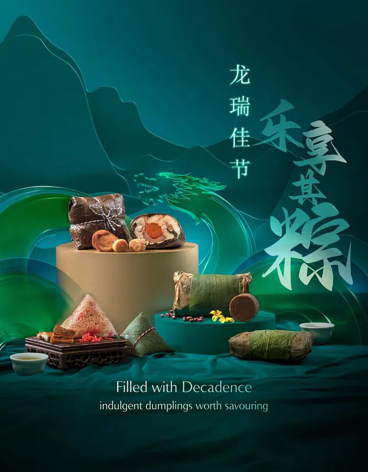圣淘沙名胜世界(Resorts World Sentosa)的风水廷(Feng Shui Inn)推出三款美味粽子。首先,上等海味鲍鱼菜莆裹蒸粽(Imperial Abalone Dumpling)以优质的干海鲜和多汁的鲍鱼为主料,用腌制的雪里红叶包裹,奢华又富有营养。双喜粽(Double Delight Dumpling)是传统与现代融合的美食探索。甜美多汁且嫩滑的烤鳗鱼与带有烟熏味的培根相结合,浓郁的风味绝对会让人上瘾。推荐给甜食爱好者的鸳鸯粽(Yuan Yang Dumpling),由黑糯米和莲蓉制成,并融入香甜的椰糖,进一步提升了味道。搭配风水廷自制的桂花酱享用,滋味层次更加丰富。此外,风水廷推出适合送礼的粽子套装,里头装有以上三种不同口味的粽子(每款两粒)以及风水廷特制XO酱和桂花酱。