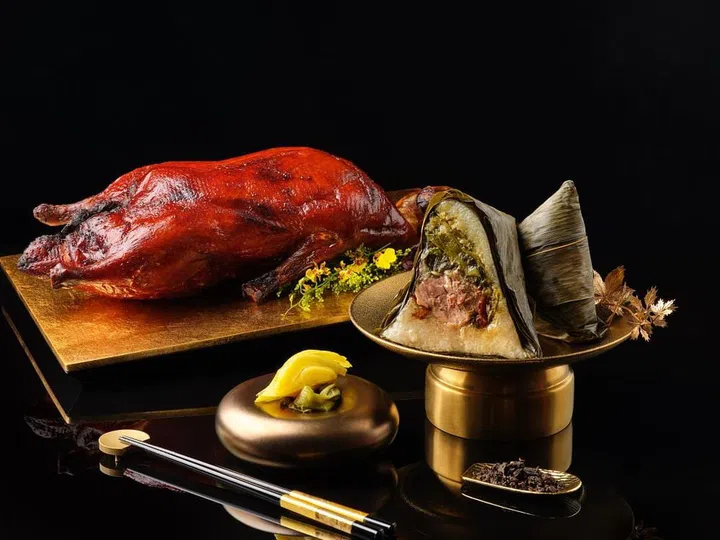 万豪中餐馆的创新口味粽子有乌鱼籽黑豚鲍鱼粽和乌龙茶熏爱尔兰火鸭粽,前者有极尽奢华的五头鲍、乌鱼子和黑猪肉,后者则融爱尔兰烤鸭和乌龙茶之韵于一身,滋味值得期待。此外还有招牌的白胡椒蟹肉粽、黄日咸肉粽、虫草花紫糯米野菌素粽可选。