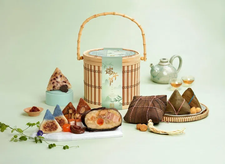 富丽敦酒店(The Fullerton Hotel Singapore)的中餐馆玉楼,今年重新推出人气口味粽子如人参鸡肉粽、松露三菇五谷素粽、港式鲍鱼裹蒸,另有3种粽子蝶豆娘惹粽、福建鲜肉香辣虾米粽和福建黄金咸蛋鲜肉粽,仅在6个粽子装的吉祥如意糯米粽臻礼篮中一同出售。