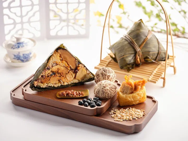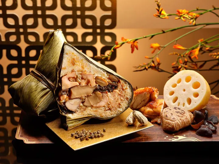 新加坡富丽敦酒店旗下中餐馆玉楼(Jade Restaurant)今年全新推出两款创新口味粽子:情怀玉粽(Bak Kut Teh Flavour Pork Glutinous Rice Dumpling)和人参鸡枕头粽(Ginseng Chicken Glutinous Rice Dumpling)。前者以本地传统美食文化为灵感,内含三层肉、咸蛋黄、香菇、各类草药和香料,再以大蒜及胡椒调味,充满南洋风味。打开粽叶一看,会被三角粽的翠绿颜色给吸引,那是从大葱萃取的绿色燃料,纯天然吃着安心。人参鸡枕头粽,顾名思义就是以人参鸡汤为灵感,内含腌渍过的鸡大腿肉、火腿、香菇、咸蛋黄、人参、红枣及其他中药材,营养非常丰富,吃起来味道让人联想起韩国的参鸡汤(Samgye-tang)。钟爱传统口味的人,则可选择玉楼咸肉炒米粽(Jade’s Five-Spice Pork Glutinous Rice Dumpling)或玉楼的招牌——传统港式鲍鱼裹蒸粽(Traditional Hong Kong-Style Abalone Treasure Glutinous Rice Dumpling)。