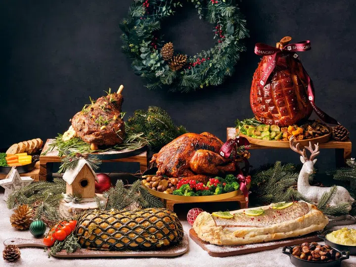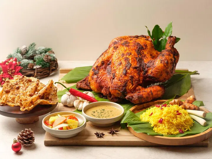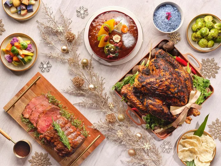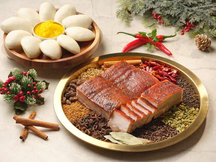 新加坡富丽敦酒店(The Fullerton Hotel Singapore)从本地美食汲取灵感,创造出烤叻沙火鸡,采用芳香的叻沙香料腌制,配菜有椰奶和姜黄米饭(nasi kunyit)配蔓越莓、腌菜、花生、江鱼仔脆饼,吃前再淋上香辣椰汁酱,带来与众不同的味觉享受。另一款不容错过的圣诞创意佳肴,是以经典“扣肉包”的“升级版”,慢烤日本黑猪五花肉搭配松软的馒头、清甜爽口的木瓜酸以及特制酱油。
