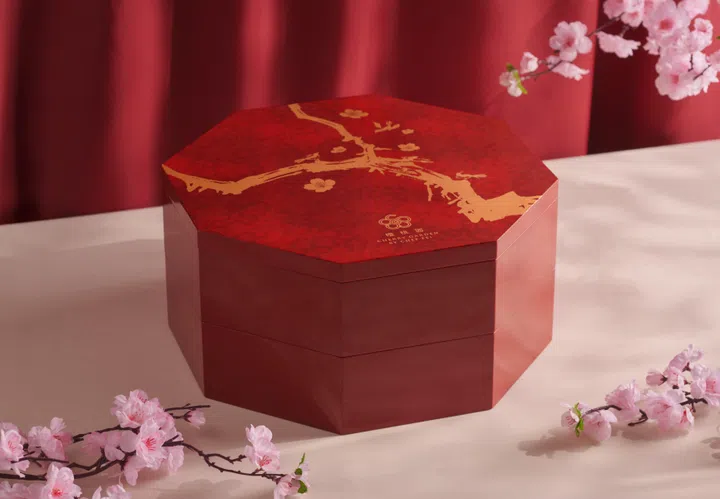 另外,樱桃园也推出适合6至8人享用的外带鱼生,精选香脆芋丝、武江榨菜、花生、南瓜子,并且同样淋上自制浓郁酱汁;每一份鱼生均可选择澳洲龙虾肉、切片鲍鱼或烟熏三文鱼,满足不同喜好。这款外带鱼生盛载于设计典雅的双层八角形礼盒中,象征团圆美满,享用完鱼生后亦可再利用作为零食盒,盛放各式糖果与节庆小食。