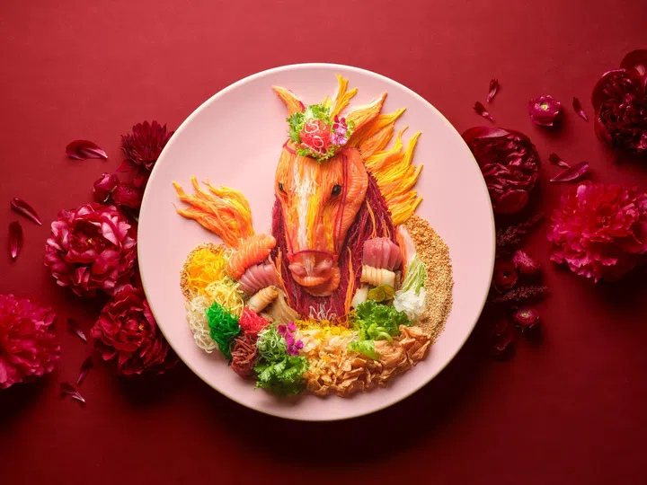 为迎接农历新年,新加坡香格里拉酒店(Shangri-La Singapore)推出款限量版“骏马捞起鱼生”,以骏马造型呈现,象征腾跃向前、马到成功。精选烟熏三文鱼与海蜇,搭配色彩缤纷的新鲜蔬菜、腌渍食材与多款佐料,层次丰富、寓意吉祥,象征新一年繁荣兴旺。此鱼生适合6至8人享用,仅供堂食;需至少提前两天预订。