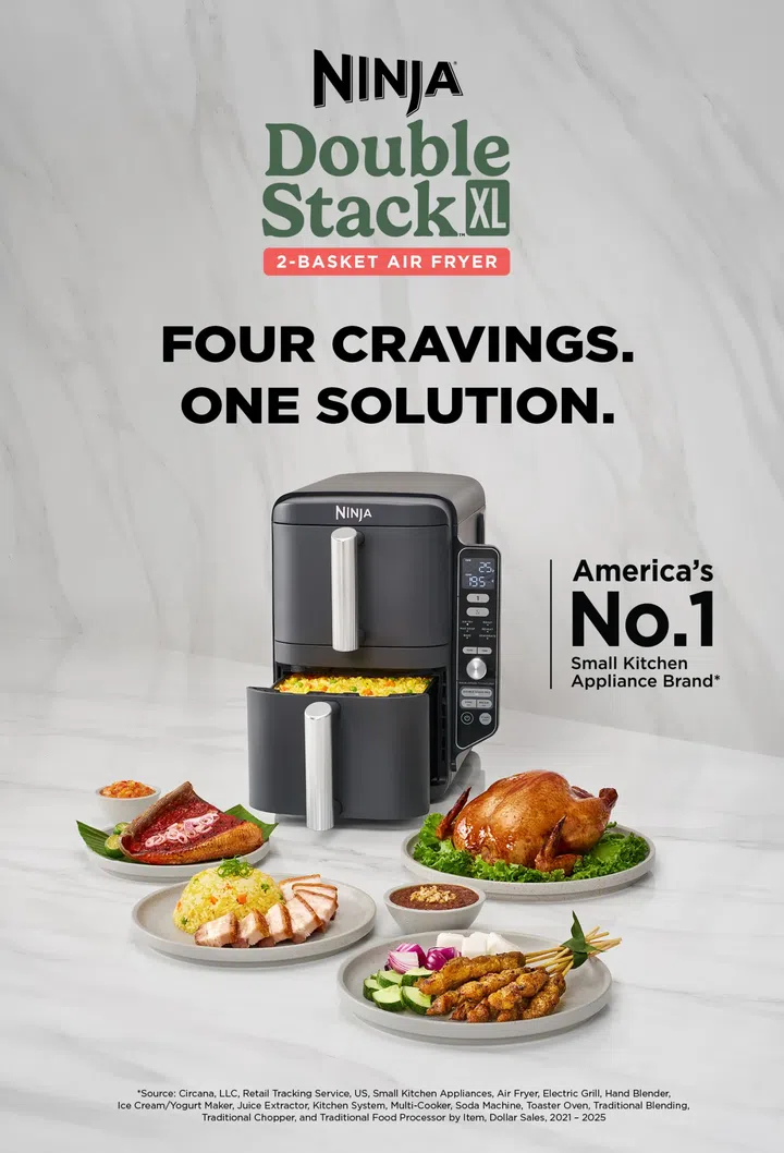 想在厨房添置双抽屉空气炸锅,却苦于台面空间不足?Ninja Double Stack XL双层空气炸锅正是理想解决方案。机身体积缩小30%,容量依然充足,专为小厨房、大家庭与聚会设计。两组独立抽屉可分别设定温度与时间,并通过同步功能同时完成烹饪;配合随附的堆叠烤架,更能同时烹制四种不同食物。背部风扇确保每一层均匀受热,从鸡柳、薯条到鲑鱼、芦笋,都能酥脆可口。每个抽屉足以容纳一整只4.75公斤烤鸡,整体高度仅38.5厘米,适合放置于橱柜下。具备空气炸、烘烤、烘焙、脱水、再加热与Max Crisp冷冻速脆六大功能,比传统风扇烤箱快 55%。所有抽屉与配件均可放入洗碗机清洗,轻松维护。