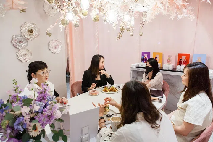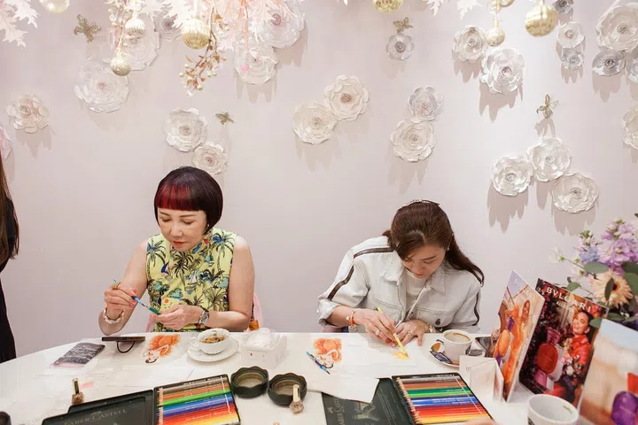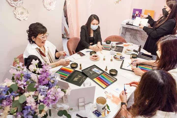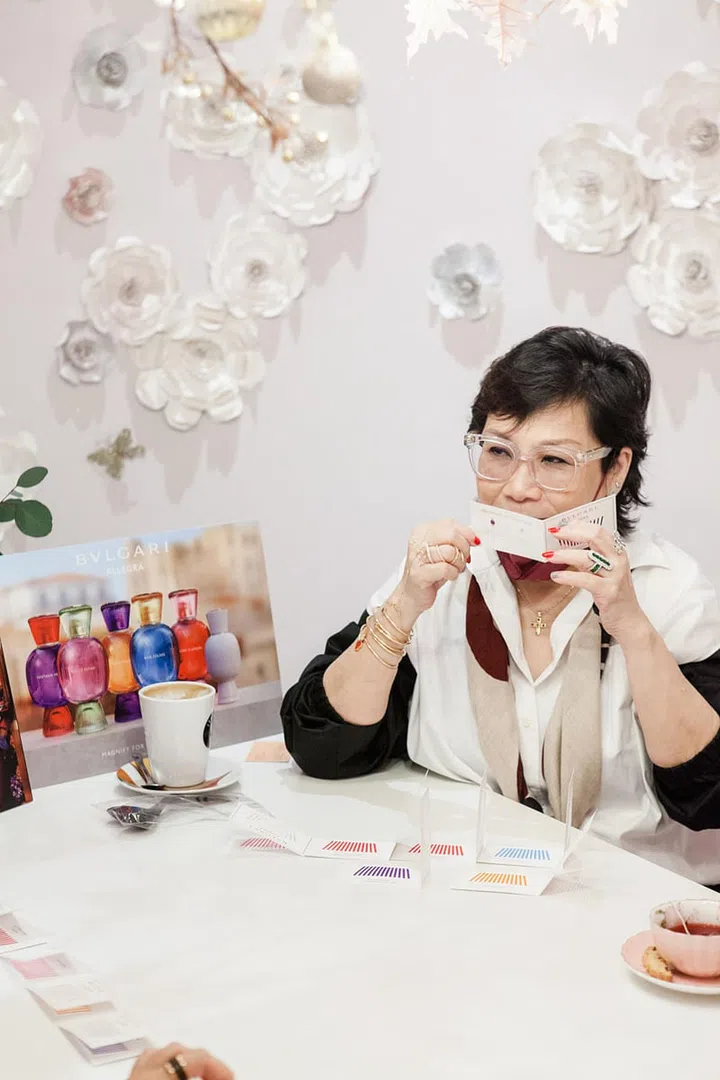 《风华ICON》的宾客们在义安市的Cafe Q Classified享用了温馨的下午茶,并与Bvlgari Allegra一起体验奇妙的香氛之旅。下午茶后,大家也参与了Artclaytion呈现的水彩画工作坊,为自己画一瓶专属的MAGNIFYING ESSENCE香水。