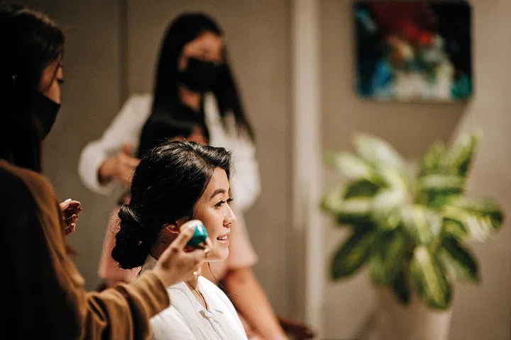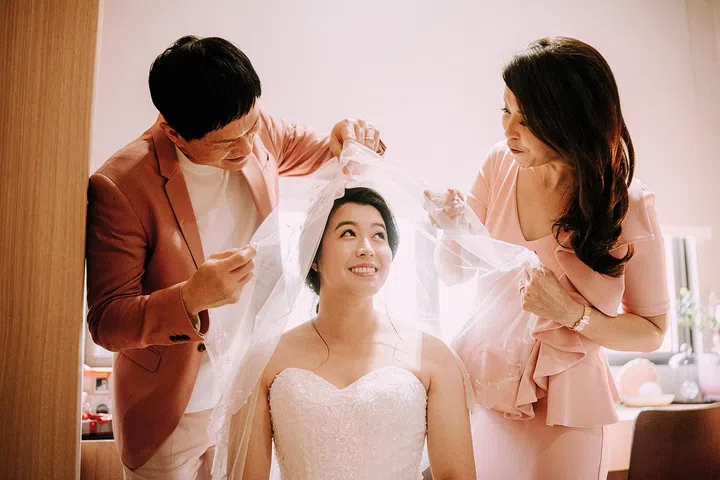在特别的时代,留下特别的记忆。冠状疫情打乱不少新人的计划,但本地文具与小皮具品牌Bynd Artisan创办人兼夫妻档关卫贤(James Quan)和曾薇薇(Winnie Chan)的爱女关嘉荟(Vera Quan)与丈夫陈军恺(Glenn Tan)仍决定于原定的6月14日,也就是新加坡进入“高警戒解封第二阶段”的前一天举行婚礼。计划总赶不上变化,两人花费五个月亲自筹划婚礼,直到婚宴一星期前都还在做调整,例如依照政府规定,从一桌八人改为五人,将伴郎伴娘人数减少等。宾客也必须提前接受冠病检测,对此,夫妻俩非常感激亲友的谅解与配合。婚礼没有特定主题,但由于Glenn是名军官,婚宴上特别安排了两排军官用军剑摆出拱门,为新人留下难忘又深具意义的回忆。