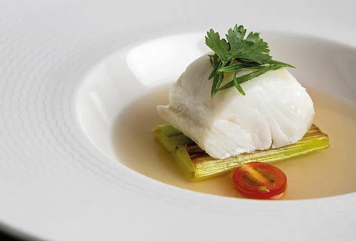 清蒸鳕鱼搭配芫荽、芹菜和香姜,象征年年有余