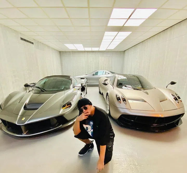 他曾晒出自家车库的照片,可见三辆全世界限量的超跑,分别是“马王”法拉利(LaFerrari Aperta)、意大利名车“风神”(Pagani Huayra)和Mercedes Benz的“SLR 722”。