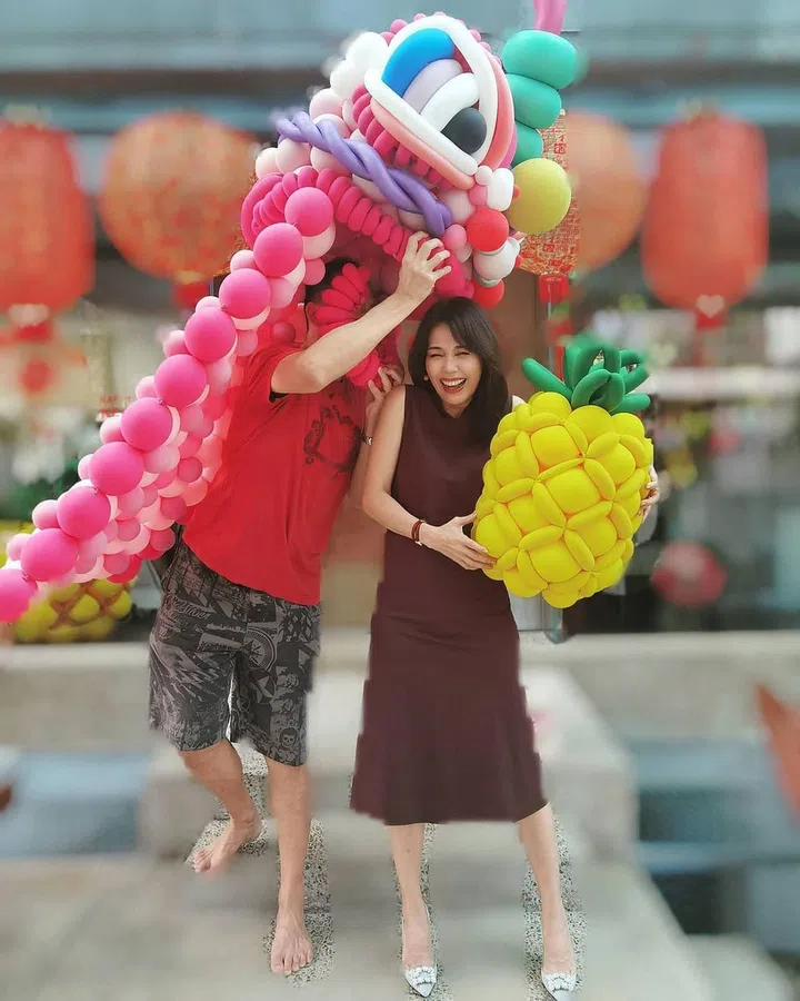 今年的情人节适逢农历新年,阿姐郑惠玉秀出一张和老公拿着新年道具互相打闹的照片,写下:”狮子发威,甘拜下风。谁才是当家的,一眼就明白了。“字里行间透着小两口的幸福。