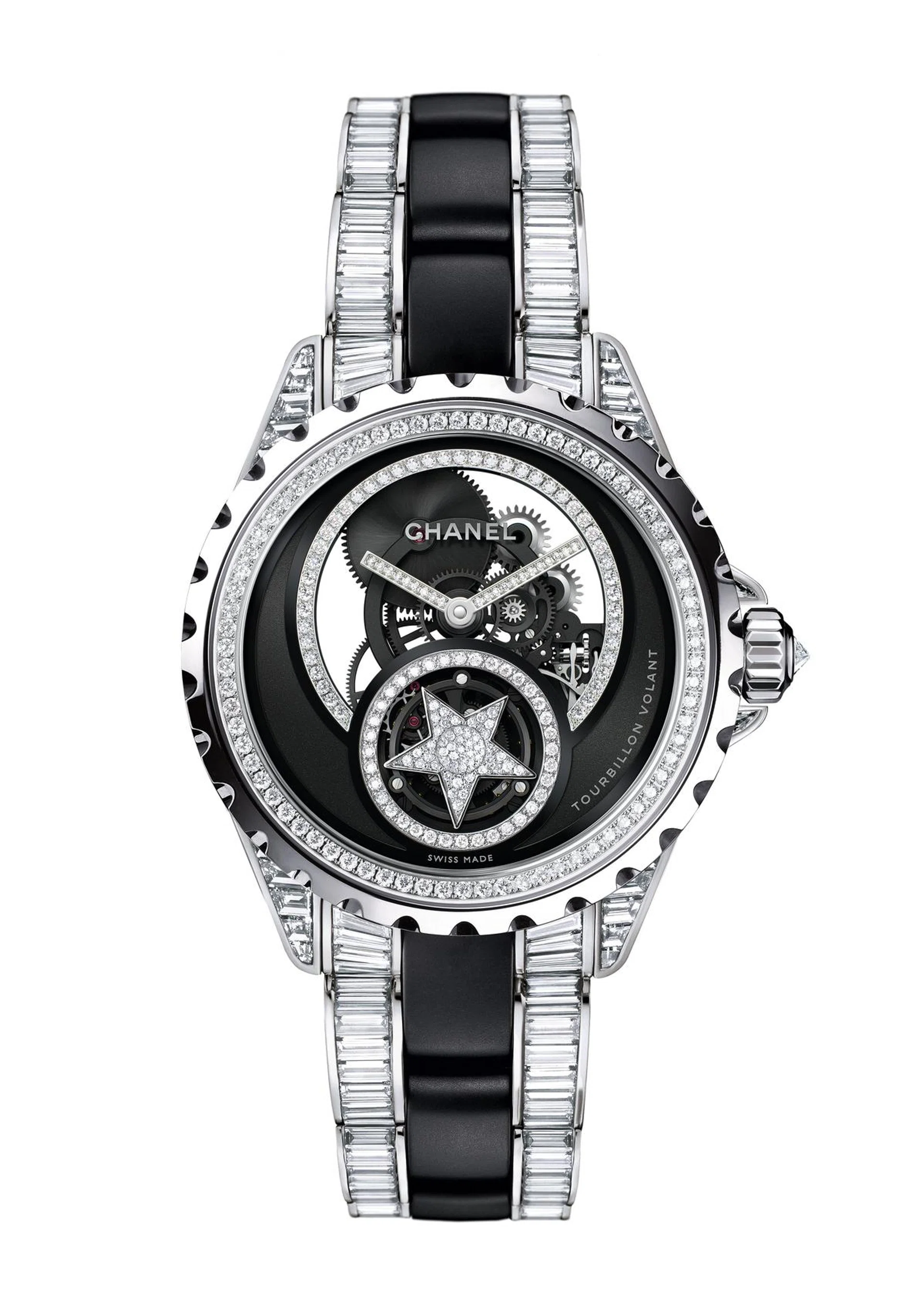 生活Chanel低调之美香奈儿延续了与瑞士制表大师Renaud et Papi manufacture 的合作,致力于生产卓越的机械装置,包括个性化的飞行陀飞轮。文 / Sylvester ng / 3 Nov 2015chanelShare this article2015年,黑色陶瓷J12腕表搭载仿效彗星样式的陀飞轮,并冠以香奈儿(Chanel)的象征:一颗彗星。有趣的是一般的飞行陀飞轮腕表都是把该复杂功能大方地显示在表面上,不过香奈儿却以自己一贯的低调方式,把它隐藏在彗星后。在镂空架构内部则显露出独家的手动上弦机芯。除了工艺复杂,J12镂空飞行陀飞轮腕表也是一款珠宝首饰,点缀着145颗明亮切工钻石。限量版20枚。chanelShare this article