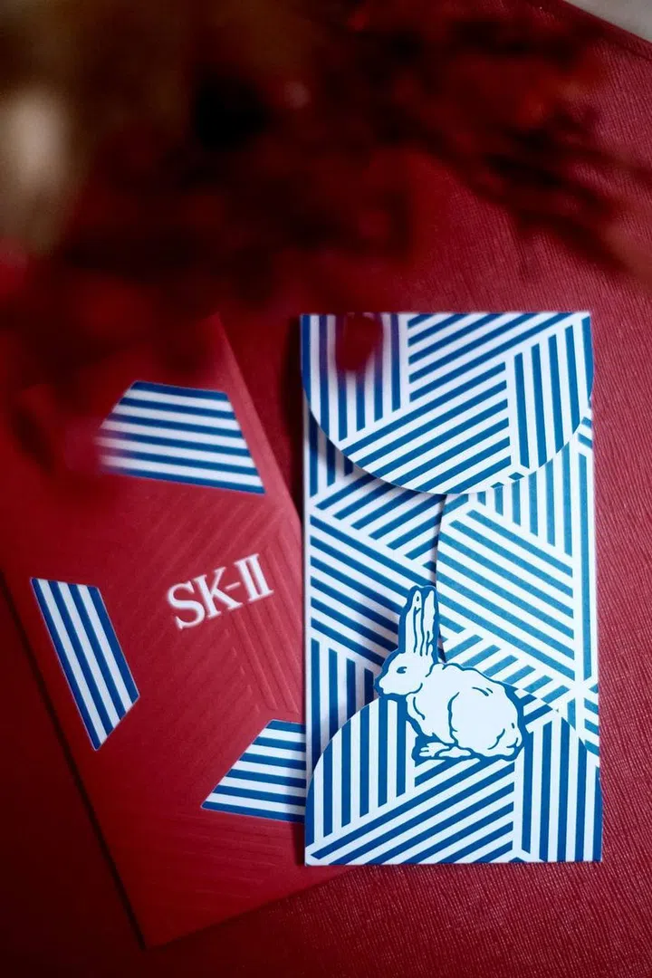 SKII 出乎意料与大白兔奶糖联手推出新春限定款,将人气“神仙水” 换上大白兔奶糖的蓝白包装,红包封也延续风格,利用品牌的标志性红色搭配蓝色条纹,内有乾坤,打开还“兔”然有惊喜呢!