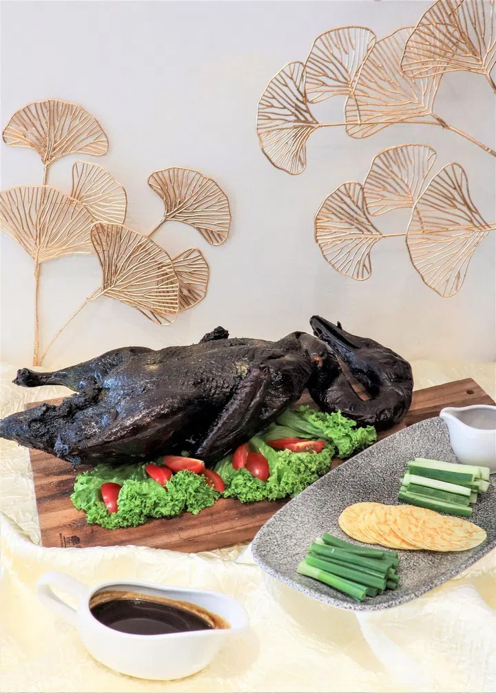 谁说农历新年一定要吃中餐?若想来点不一样的,现代欧陆餐馆Tablescape的外带菜单中的黑松露烤鸭,绝对能带给你和你的客人惊喜。以传统北京烤鸭为灵感,软化多汁的鸭肉弥漫着松露香味,还可搭配着薄饼、黄瓜、韭菜和松露鸭酱一起吃。