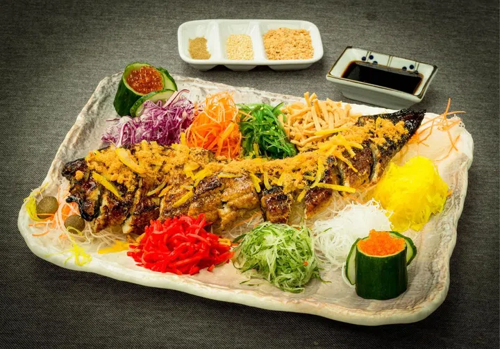 鳗鱼迷看过来!来自日本的百年鳗鱼名店Unagiya Ichinoji首次推出日式鱼生用料当然少不了招牌蒲烧鳗鱼。鳗鱼黄金乌冬面捞生( Unagi Yusheng with Crispy Udon) 汇聚多种优质日本食材,鳗鱼以代代相传的秘制酱汁烧烤,咸甜交织,还带有独特烟熏味,外酥里嫩。鱼生上面铺满了酥炸乌冬面,由乌冬面专家Udon Kamon 特别制作。其他配料还包括腌萝卜、黄瓜丝、胡萝卜丝、白萝卜丝、紫色包心菜、红生姜、中华炸物、鱼卵、柚子皮、肉松。