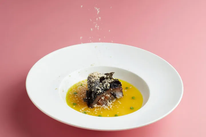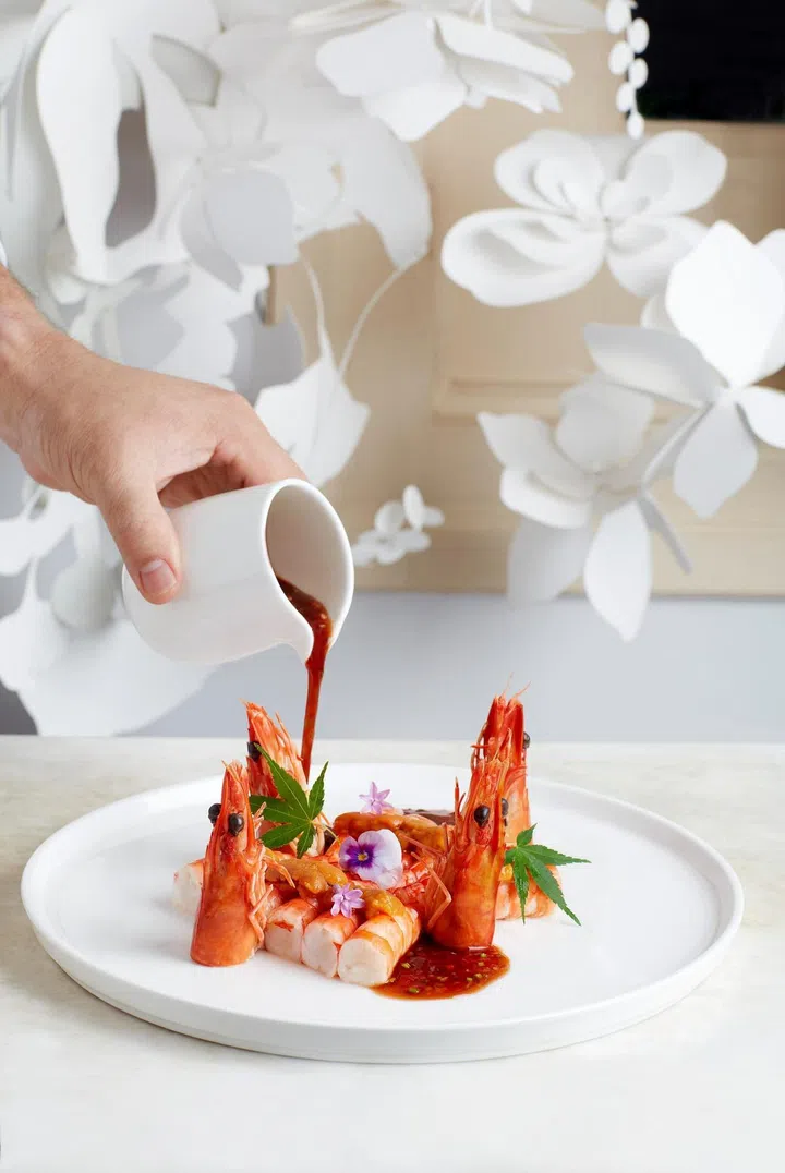 一系列独具匠心的全新菜肴,包括“镇江陈醋鲍鱼配冰镇桃太郎番茄”、“乳猪鱼子酱虾饼”、“新西兰草饲羊扒配香茅油醋”、“瑶柱虾米炒香麦菜”等。值得推荐的主食包括“脆炸龙虎斑鱼配30 天生腌辣蒜酱”,这道致敬粤菜传统腌渍技艺的料理,做法是将蒜头浸泡在红醋及秘制酱料整整30日,再用它点缀香脆“龙虎斑鱼”(Hybrid Grouper),让味道和口感更加丰富多彩。招牌汤品“纯·炖甘榜鸡汁配黄花鱼胶”,采用极为讲究的“蒸滴”工艺,将鸡精萃取至最纯粹的精华,是平衡、专注与纯净的极致体现。