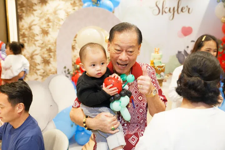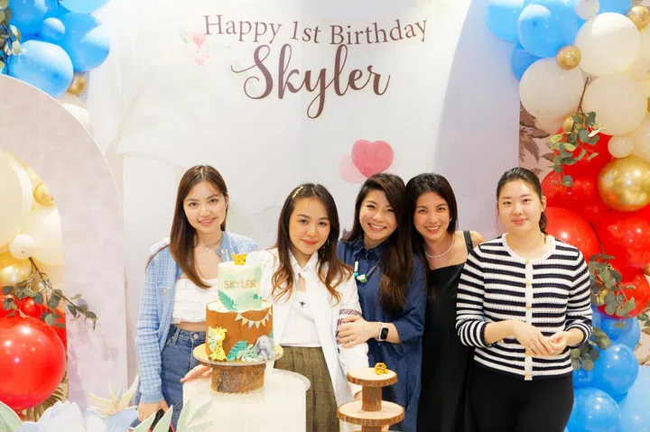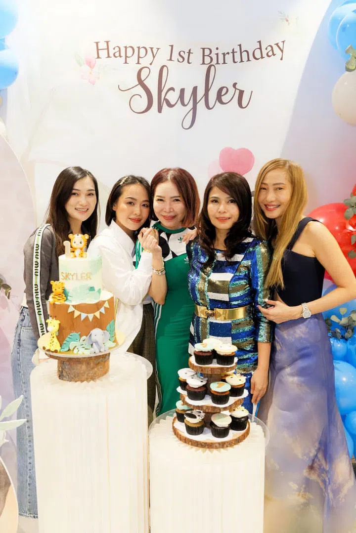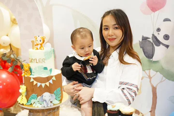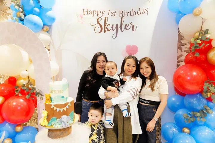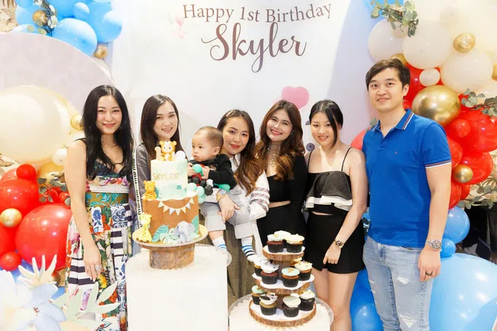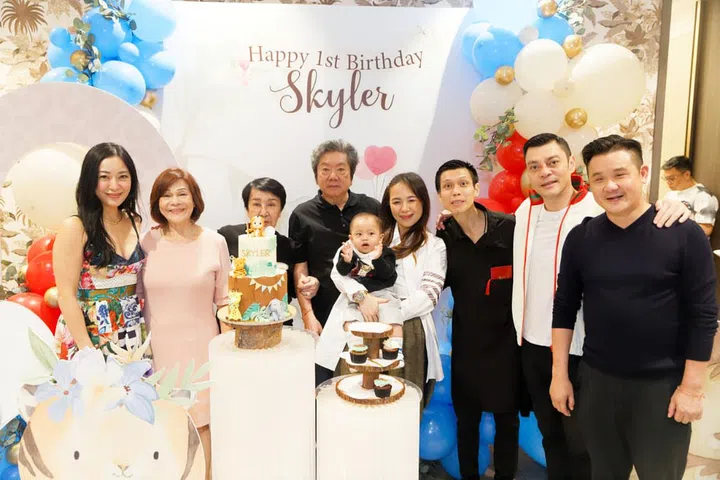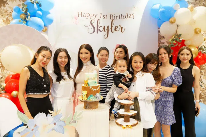 今年的7月7日,两人为大儿子宝宝Skyler在壹仟私厨(Yi Qian Private Dining)举办温馨的生日派对,现场以蓝色主色调,布置着可爱的动物装饰,并请来小丑为嘉宾带来气球和魔术表演,逗得大家不亦乐乎。除了双方的家人,小两口也邀请多位好友一同庆祝,其中包括城中名媛Jamie Chua、Rachel Wee、Pamela Ardana、Rosanna Kuek、Layla Pi、Rebecca Eu、Jessicacindy和Nellie Lim等人,为baby Skyler留下一个难忘的一岁生日。