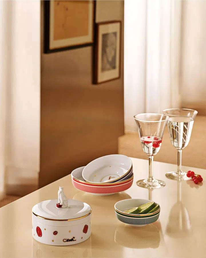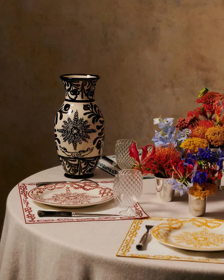 以迪奥(Dior)女装创意总监Maria Grazia Chiuri设计的2023早春度假系列为灵感,Dior Maison推出全新餐具套装,颂扬品牌的生活艺术精神。全新系列撷取安达卢西亚风情,与在塞维利亚举办的2023早春女装成衣系列发布秀巧妙呼应。标志性罗盘玫瑰、船舶、花鸟及鹦鹉图案,纷纷为该系列餐瓷作品妙意点睛,彰显大师级精湛工艺。精致装饰栩栩如生,化作马克杯、餐碗、圆形或椭圆形餐盘与甜点盘之上的灵动点缀;于意大利制作的刺绣餐垫,以及由西班牙 Ivanros 工厂制造的花瓶同样饰有同款图案,以别致符号美学颂赞匠心工艺。2023度假系列家饰以明亮的粉彩色调,例如紫水晶、蓝绿色、绿色、蓝色、黑色、红色及粉红色,为餐桌增添欢欣愉悦的气氛。以充满节日喜庆、诗意盎然的氛围,向创始人Christian Dior先生最珍重的待客之道致意。