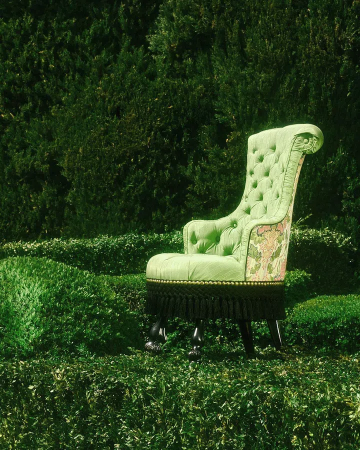 自2017年推出的Gucci Décor家居系列,由古驰(Gucci) 创意总监Alessandro Michele一手操刀设计,包含了餐具、文具、织物、家具和宠物用品等多样化的产品,旨在打造一个别具创意又独特的居家风格。Gucci Décor的特色之一即全新演绎古典花卉图样和动物图腾,以大自然的千姿百态为创作灵感,呈现丰富多彩的生活艺术作品。今年发布的家饰系列中,包括采用鲜明面料的扶手椅,为家居增添仪式感的精致餐具,疗愈心情的香氛蜡烛,以及靠枕、羊毛毛毡等生活用品,利用色调、图样、设计的并置艺术,交织成别开生面的愉悦组合,颠覆以往的设计框架,弥漫Gucci的当代浪漫主义和奇趣玩味。金属蜡烛是今年的全新商品,共有四种独特的设计及香味;全新扶手椅的正面以风格华美的云纹织物展现,背面是精心设计的棉布缇花花纹图样,搭载黑色编织和流苏元素,流露浓郁的复古气息;餐具系列点缀着Gucci的腊叶印花图案,由樱桃枝条、叶片和花朵组成,选用白色Richard Ginori陶瓷精心打造;靠垫、盖毯和被子巧妙融入Gucci异想天开的设计理念,满载各式各样的精美印花,凸显一抹华美格调。