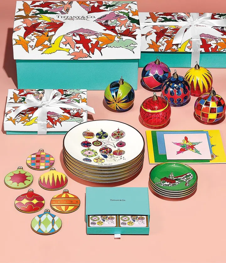 高级珠宝品牌蒂芙尼(Tiffany & Co.)历来与艺术世界有着不解之缘。从1957年至1962年,品牌邀请美国艺术家安迪·沃霍尔(Andy Warhol)绘制了一系列节日贺卡,满载节日欢乐气氛和奇思妙想。今年,Tiffany & Co.从品牌古董珍藏库中获得灵感,重新演绎Andy Warhol的节日插图,推出限量版居家精品系列作品。作为当时纽约最成功的商业插画师之一,Andy Warhol围绕飞鸟、繁星、鞋履、树木等节日主题元素,运用其标志性的涂染技法与水彩风格为Tiffany & Co.创作出一系列生动有趣的节日贺卡。这回的Tiffany & Co. x Andy Warhol联名系列也将这些节日图案融入餐瓷、装饰品、贺卡、扑克牌等限量作品中,以此致敬这位杰出人物的经典艺术,以及他与品牌之间的深厚情谊。
