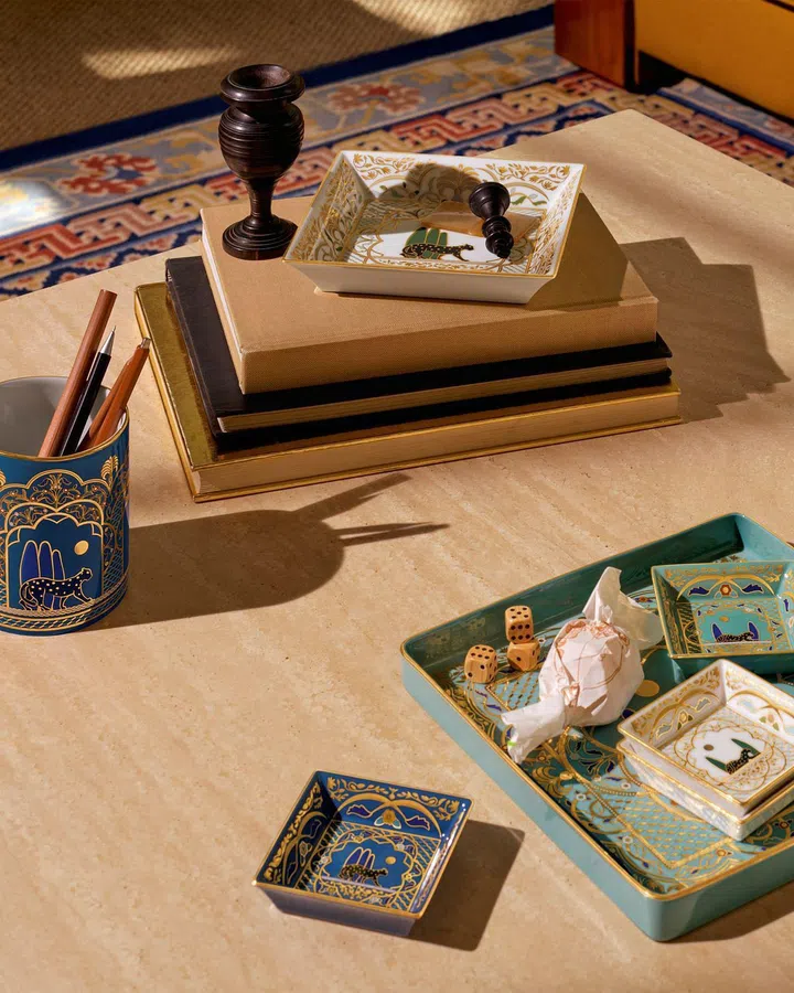 高级珠宝品牌卡地亚(Cartier)将源自珠宝与制表世界珍贵精致的美感,延伸至美好生活的每一处。今年发布的全新生活艺术系列涵盖游戏、旅行用品、书写工具、婴儿礼品和家居装饰,均采用传统工艺制作而成,以标志性元素彰显品牌美学,洋溢着欢快愉悦的氛围。Cartier生活与餐桌艺术系列的核心主题围绕在柏树间漫步的黑色猎豹,作品以奢华的白色陶瓷打造,缀以“孔雀图案”或金色饰纹,透过Cartier经典蓝色与绿色的色彩搭配,展现出深受伊斯兰文化的美学影响。Diabolo de Cartier系列则装饰着Cartier Boy和Cartier红盒图案,设计鲜明优雅。行李标签、便携化妆镜、玻璃雪球、托盘以及跳棋等生活艺术品巧妙运用了红色元素,并首次推出海军蓝款式,衬托出年末的欢庆气氛。