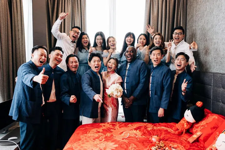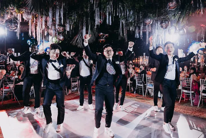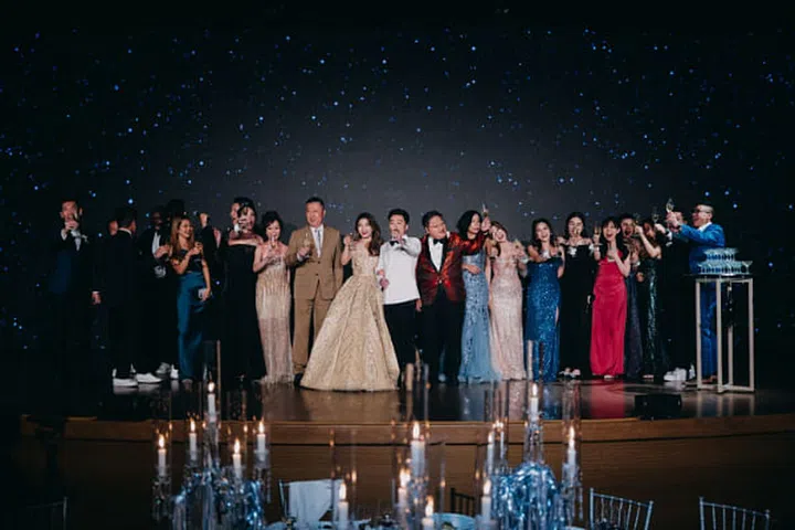 裴栋耀与郭睿欣四年前擦出爱火花,一路走来相知相惜,恩爱依旧,羡煞旁人。晚宴主题设定为“Sophisticated old-school funk” ,犹如一场集合欢乐、音乐、浪漫与一体的大型派对。小夫妻表示:”我们希望可以邀请更多朋友参与我们的盛宴,可惜受限于场地;所以如果要列出筹备时最大的挑战,莫过于筛选以及决定宾客名单。“