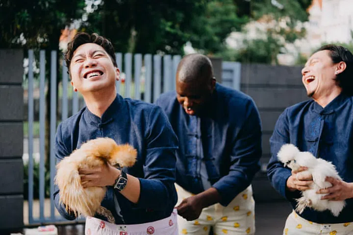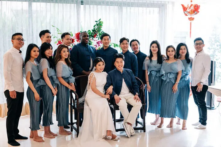 夫妻俩说:“第一次入场,看见言客厅内熟悉的面孔时,我们感到既窝心又感动,感激大家在百忙中抽空见证我们人生大事,尤其那一些一路上看着我们从情侣结为夫妻的亲友们。当然!我们也很喜欢跟朋友和兄弟姐妹们一起共享欢乐时光,很开心兄弟们成功为宾客们带来惊喜,当他们站到椅子上时,马上就炒热现场气氛。我们从后方目睹这一切时觉得非常有趣。”