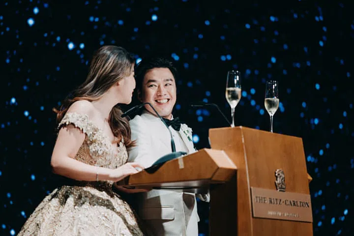 本地商二代裴栋耀(Clement Piak)与郭睿欣(Rosanna Kuek) 于1月7日,于本地星级酒店The Ritz-Carlton, Millenia Singapore举办婚礼。裴栋耀目前在家族企业旗下防火工程建设集团任职,郭睿欣则在家族金融企业担任要职,两大集团结亲,宴请约650贵宾,除了亲友,也包括商界人士,现场热闹非凡。